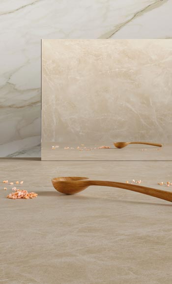 Er kan een grote verscheidenheid aan randprofielen van één diktemaat worden gemaakt in porseleinkleuren. Deze afwerkingen leggen het frame van het blad bloot, dat in kleur en ontwerp verschilt van het oppervlak van het blad.