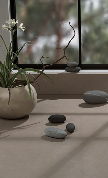 Een rijke tweekleurige basis van warme rookgrijstinten, met delicate klei-ondertonen en grijze aderen die een tweekleurig oppervlak creëren, in een Polished-afwerking die diepte toevoegt.