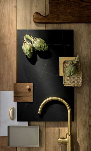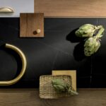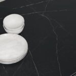 Een dramatische zwarte basis, hartstochtelijk geanimeerd door flarden van fijne lijnen die als een bliksemschicht door een strakke middernachtelijke hemel schijnen, in Honed-afwerking. In combinatie met omgekeerde platen krijgt een levendige tegengestelde beweging nog meer kracht.