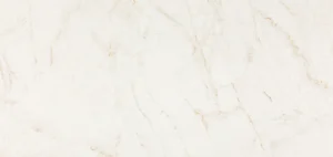 Een gebroken witte, gevlekte basis, verfraaid met fijne goudbruine aders die vloeien met doorschijnende accenten, aangevuld met delicate witte en lichtgrijze lijnen die in het oppervlak vervagen. Het resultaat is een zachte, harmonieuze uitstraling die warme en koele elementen in balans brengt.