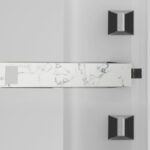 Een verleidelijke combinatie die overloopt van de vurigheid van dichte, donkere en zachtgrijze diagonale aderen, over een smetteloos witte basis.