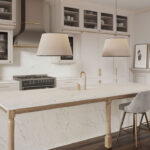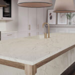 Eénwandige boerderijkeuken met eiland in Caesarstone 531 Libretta | 8268 | 8269