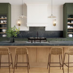 De combinatie van materialen, texturen en rijke, warme kleuren levert een ruimte op die grenst aan harmonie tussen klassieke en transitorische stijlen en tegelijkertijd geniet van hun kenmerken.